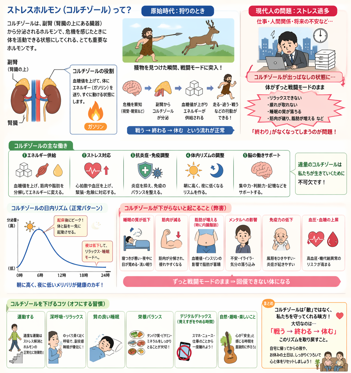 このコルチゾールは、副腎(腎臓の上にある臓器)から、